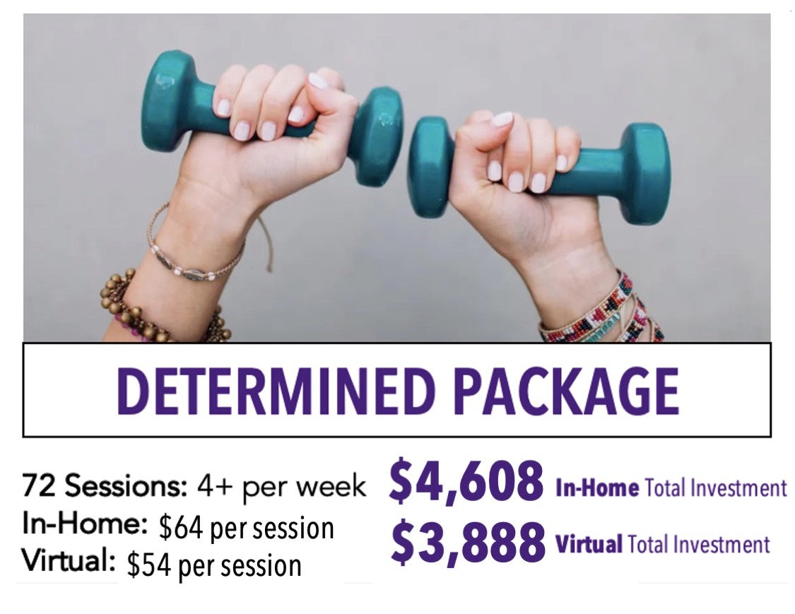 The Determined Package is designed to deliver you the ultimate results possible and set you up with all the tools required to maximize your body's true potential. This program is perfect for both the fitness beginner as well as the experienced athlete.
